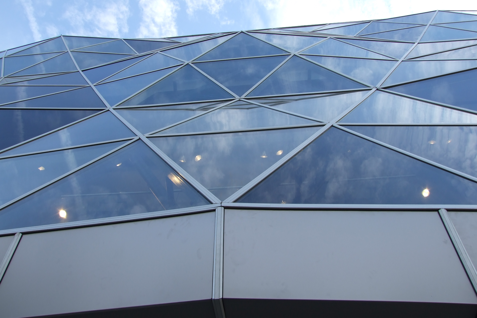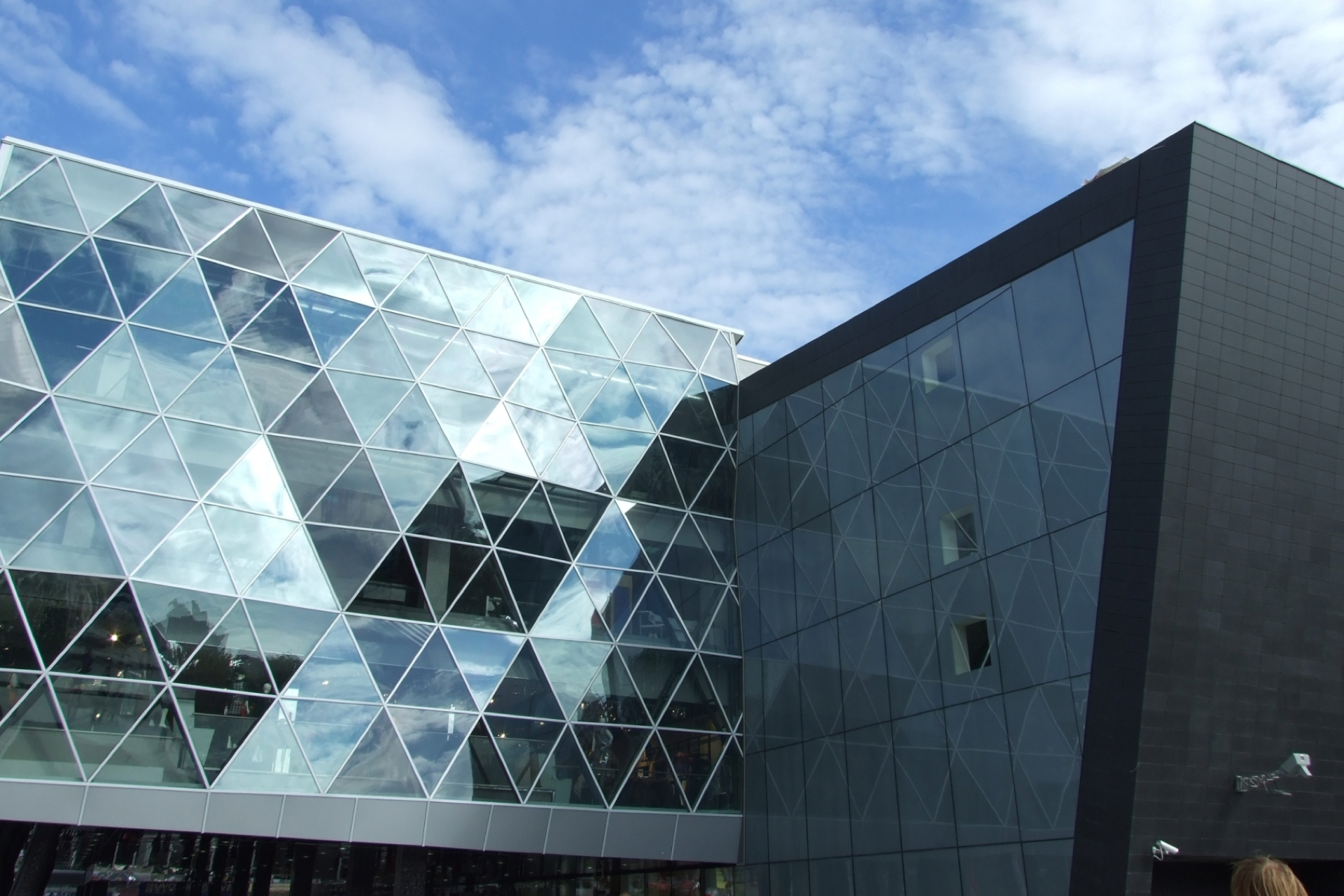 Современность и грамотный выбор фасадных решений в виде сложного многоплоскостного витража, технически сложная конструкция навесного вентилируемого фасада с ломаными линиями гарантировала актуальность центрального вида на много лет вперед.